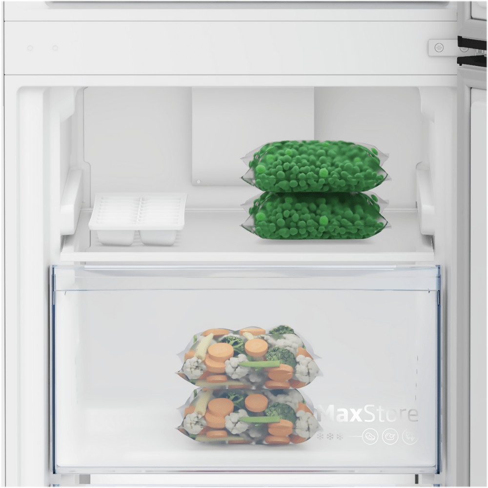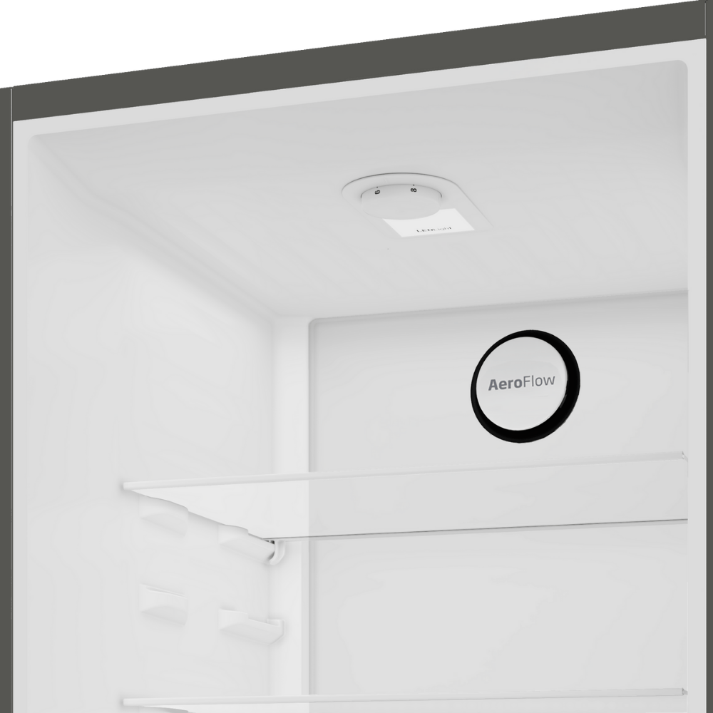 No-Frost технологија (AeroFlow™) – ладен воздух циркулира рамномерно низ сите полици за да се елиминира мраз и неред.