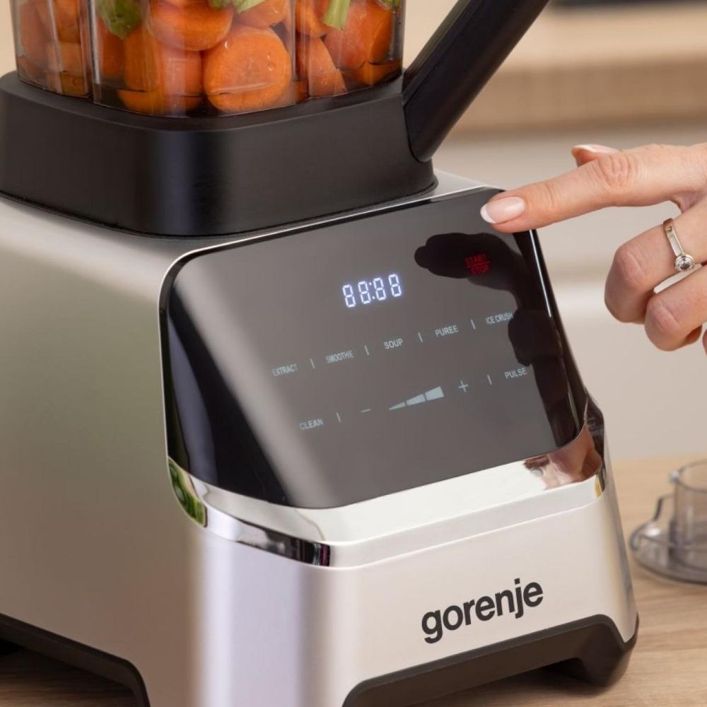Запознајте го моќниот BP1500DE-G0R Blender — дизајниран да ви овозможи професионални резултати во вашиот дом. Со мотор од 1500 W, ова е алатка што лесно ќе се справи со смутии, супи, мелење на состојки, па дури и сечение и дробење на мраз. Големата Tritan контейнер од 2 литри и шестоточилниот нож од нерѓосувачки челик SUS303 гарантираат одлична конзистенција и квалитет, додека контролната табла со допир и неколкуте програми го прават целиот процес едноставен и интуитивен. Ова е вибрантен додаток за секоја современа кујна која не прави компромис ниту со перформансите, ниту со стилот.