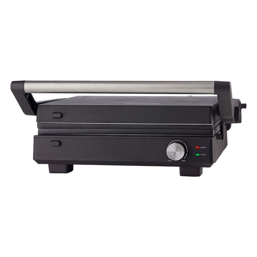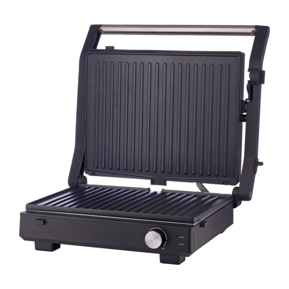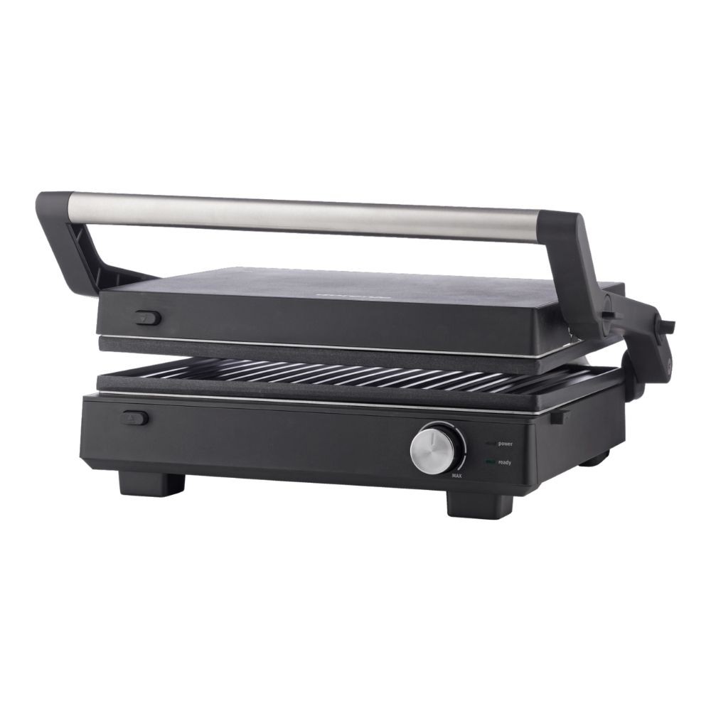 Овој контакт-грил е дизајниран така што ви овозможува максимална флексибилност: може да го користите во три основни позиции — затворен, полузатворен и целосно отворен — што значи дека освен класичното грилување, можете да приготвувате и сендвичи, панини или поголеми парчиња месо и зеленчук. Површините со нелеплива обвивка го олеснуваат процесот на грилување и чистење, а дренажната канта ја собира вишокот масти и течности — за поздрав и почист начин на подготовка.