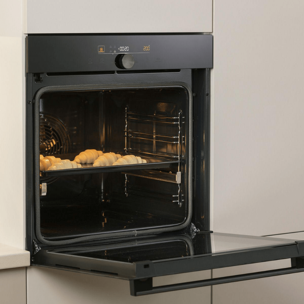 Со Gorenje BO3PYEI01XK готвењето станува уживање. Оваа вградна рерна од 77 литри обединува иновативна технологија, модерен дизајн и практични функции, за совршени резултати во секое јадење — од сочно месо до совршено испечена пица.