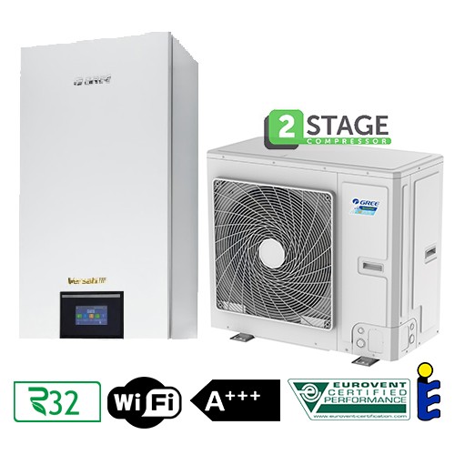 GREE VERSATI III GRS-CQ6.0Pd/NhH2-E(I) е внатрешна хидро единица за split систем топлотна пумпа воздух-вода, наменета за ефикасно греење, ладење и санитарна топла вода. Со инвертер циркулациона пумпа, автоматски електричен грејач и исклучително тивка работа, оваа единица е идеален избор за современи станбени системи со подно греење, фан-коилери или радијатори.