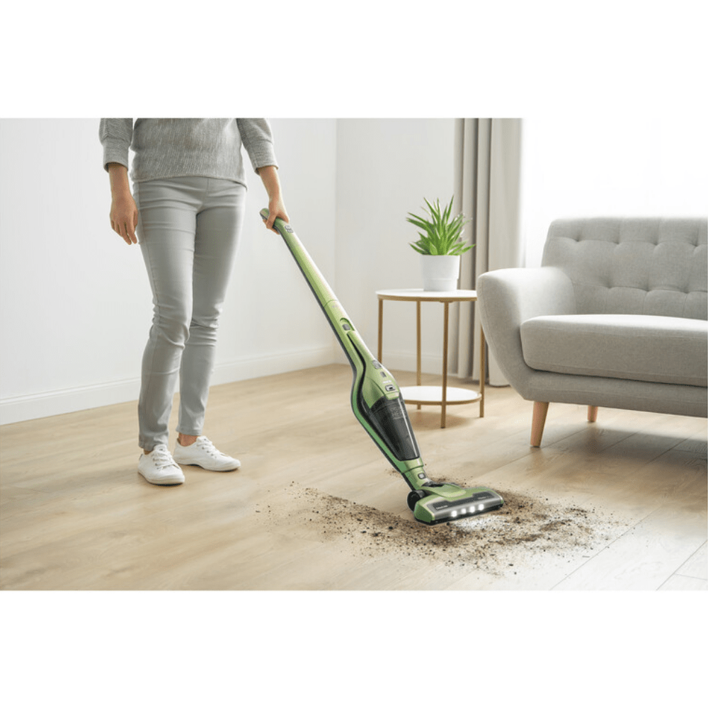 Лесна за употреба правосмукалка нуди брзо и едноставно решение за секојдневно чистење на сите видови површини. Целосна слобода на движење без кабел за напојување. Одлично ракување и лесно маневрирање околу мебел благодарение на млазницата што се врти за 180° и малата тежина на правосмукалката. Самостојна функција за привремено исклучување и практично складирање на правосмукалката.