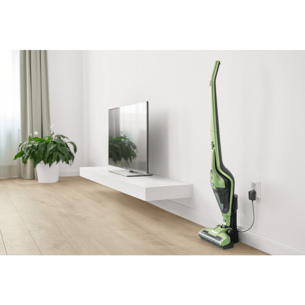 Полнач за практично складирање на правосмукалката со интегрирана функција за полнење и држач за додатоци. Кога ќе завршите со чистењето, само ставете ја правосмукалката во станицата, каде што автоматски ќе почне да се полни. Така, таа е секогаш подготвена за следното чистење. LED индикатор за полнење на батеријата.