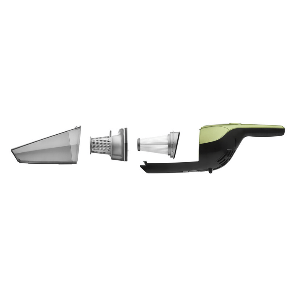 Со допир на копче, рачната единица може лесно да се отстрани и, заедно со заменливите додатоци, е совршена алатка за чистење прашина од мебел или внатрешноста на автомобилот.